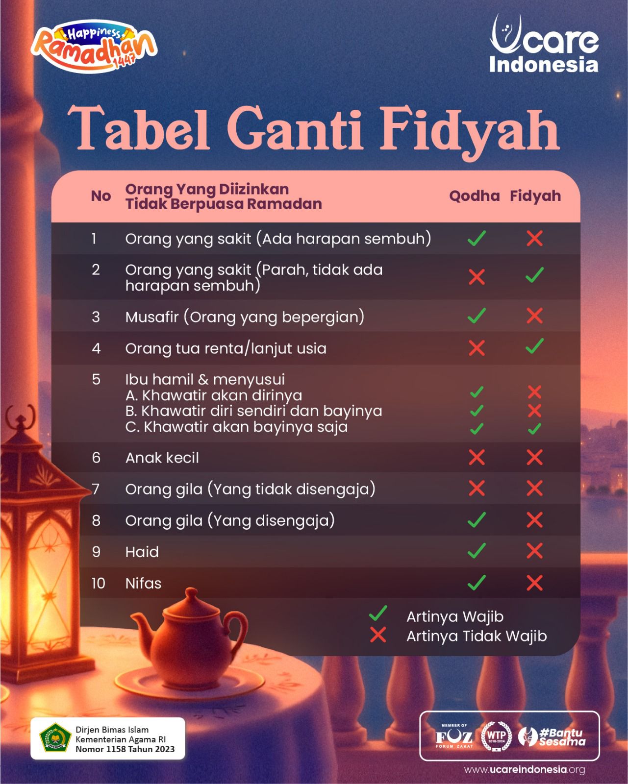 Namun, Islam adalah agama yang penuh kasih sayang. Bagi mereka yang memiliki uzur syar’i dan tidak mampu berpuasa, Allah memberikan keringanan untuk menggantinya dengan membayar fidyah. Yang wajib membayar fidyah antara lain: